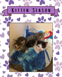 ‘‘Kitten season is the time of year when we see a large increase in kittens, usually during the spring and summer months. As more cats give birth, shelters quickly fill with litters that need food, medical care, and loving homes. This is one of the busiest times of the year for us! Community support is crucial to help care for these tiny lives.”